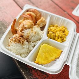 We ordered the garlic shrimp (#1) it was AMAZING! The portions were great for the price. Super affordable and high quality, which has been hard for us to find on the island. This was definitely my favorite meal so far on our trip to Hawaii. Everything was made to order, fresh and hot. I loved the chance to support this small, local business. Not to mention the owners were so sweet and kind. Sorry for no pics of the meal, it was so good I couldn't wait to snap a pic. Drop by for a meal, you won't be disappointed!! One word: YUM